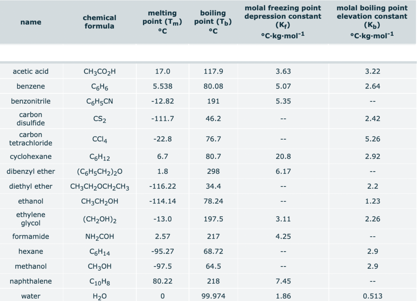 c the table below shows the boiling points of pure water and pure