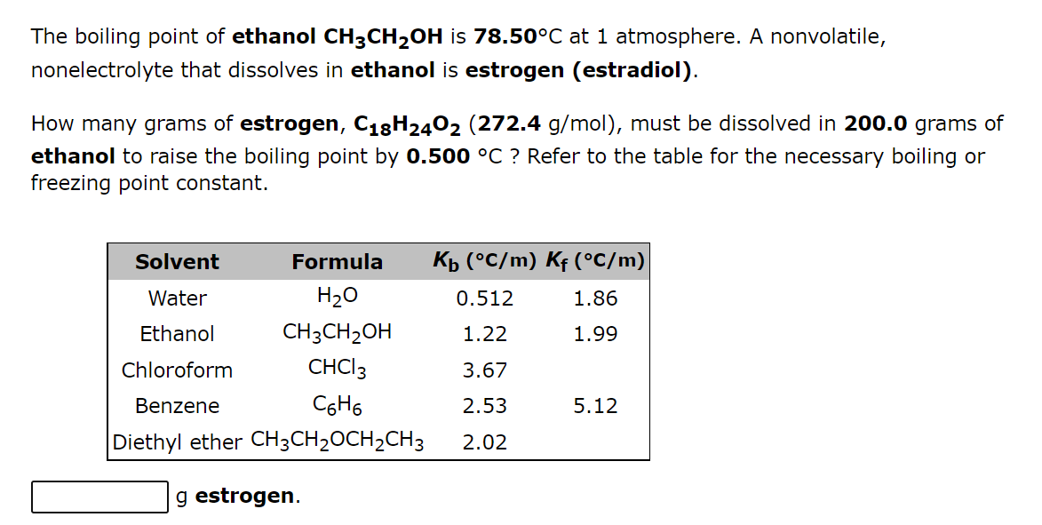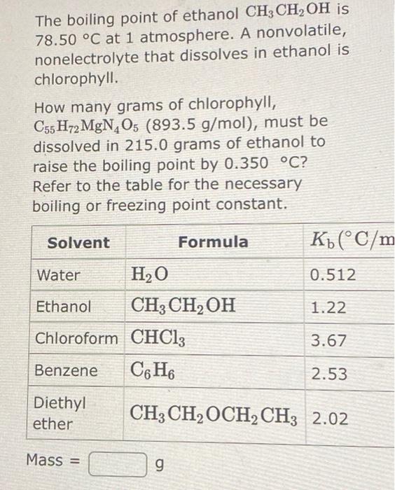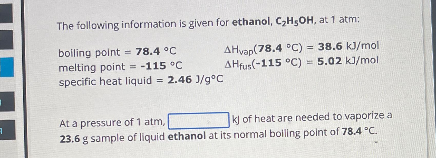 Solved The boiling point of ethanol, CH3CH2OH, is 78.50°C at