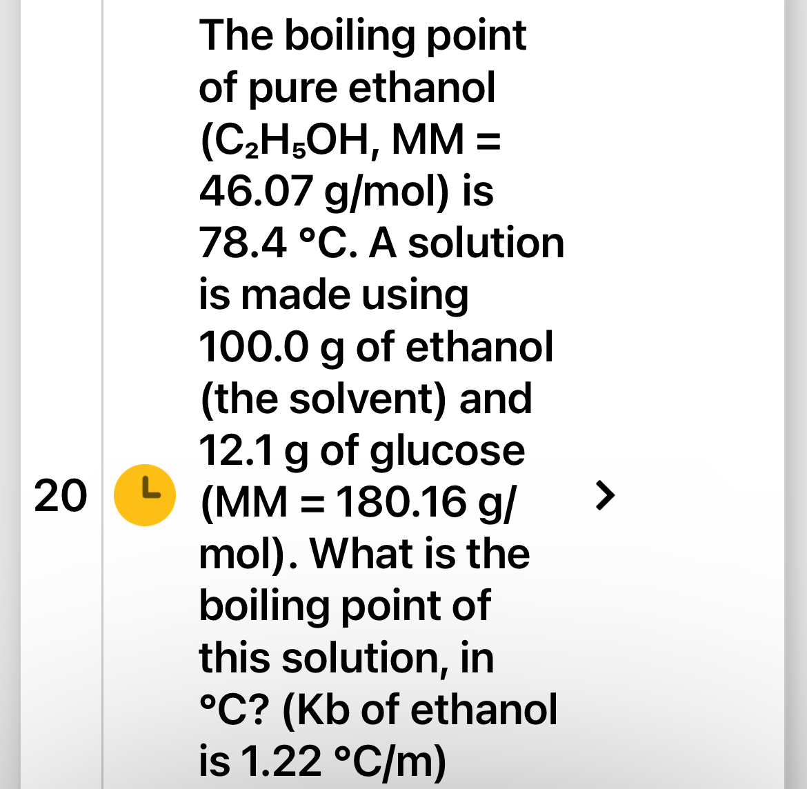 the boiling point of pure ethanol is 784 ca solution is made using 1000