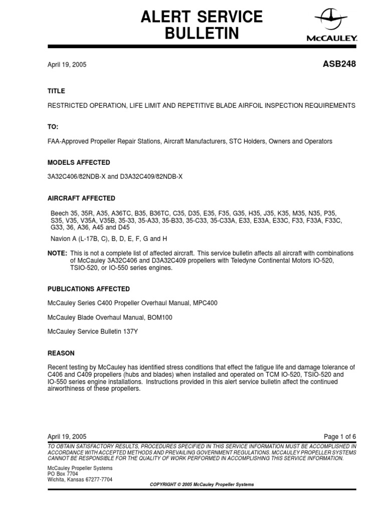 Alert Service Bulletin Emergency PDF Aviation Manufactured Goods