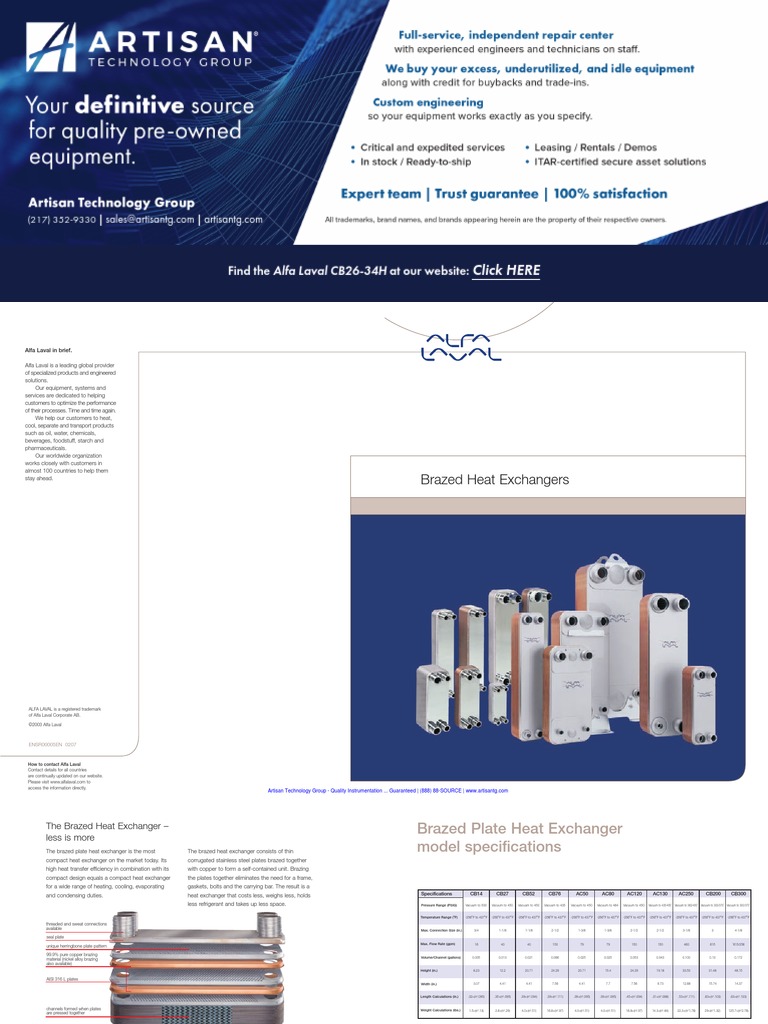 Alfa Laval 2020 Brazed Plate Heat Exchanger Catalog (Interactive) PDF