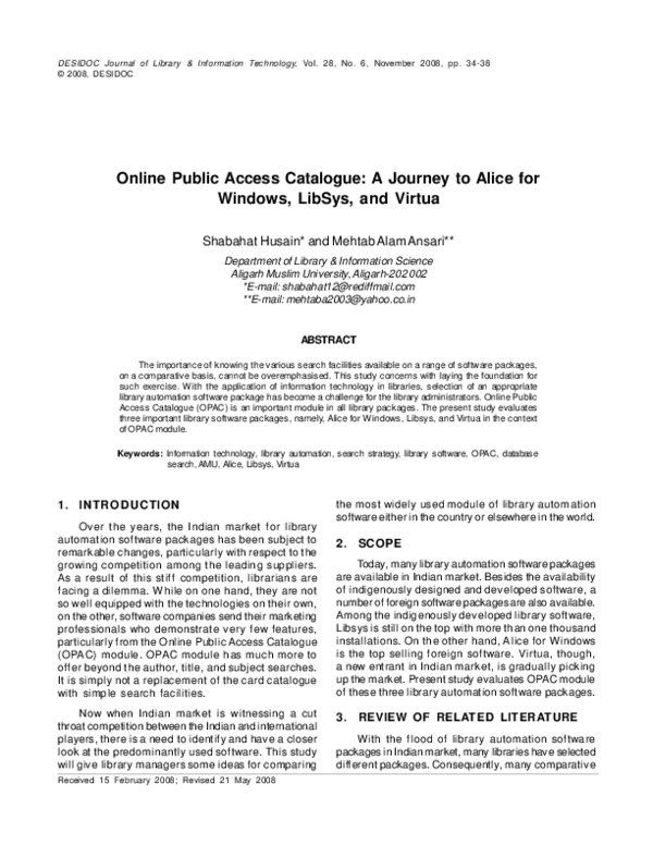 (PDF) Online Public Access Catalogue A Journey to Alice for Windows