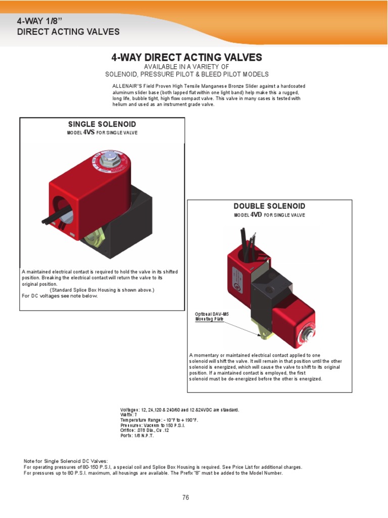 Allenair Catalog 4 Way DA Valves PDF PDF Valve Vacuum Tube