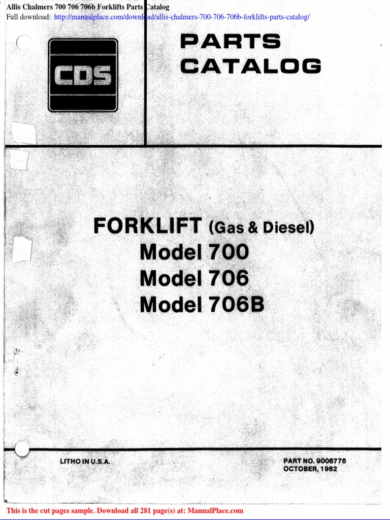 Allis Chalmers 700 706 706b Forklifts Parts Catalog PDF