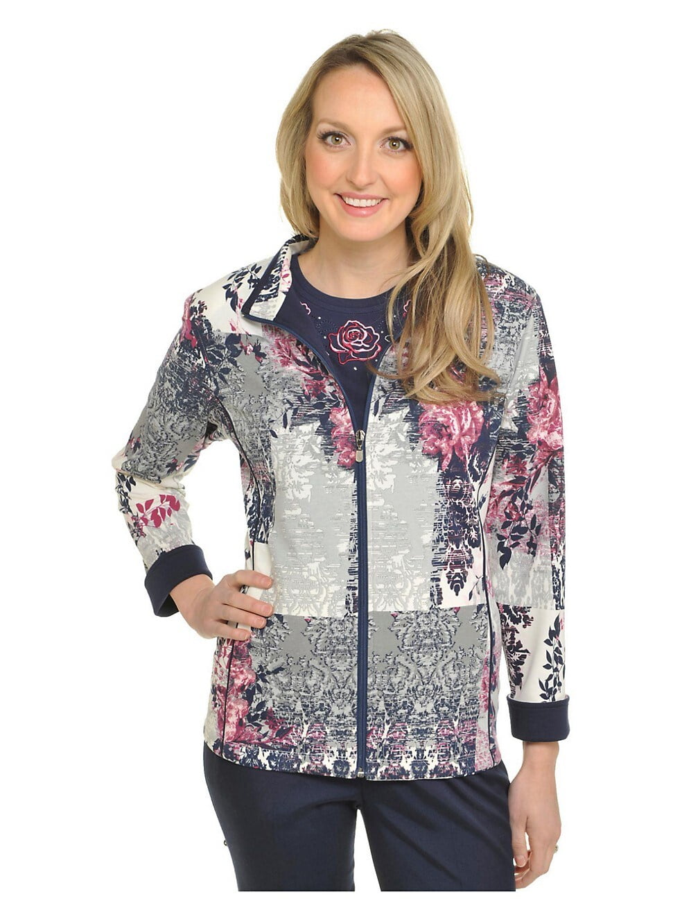 Allison Daley Floral Batik Print 3/4 Ruched Sleeve Keyhole Neck Knit