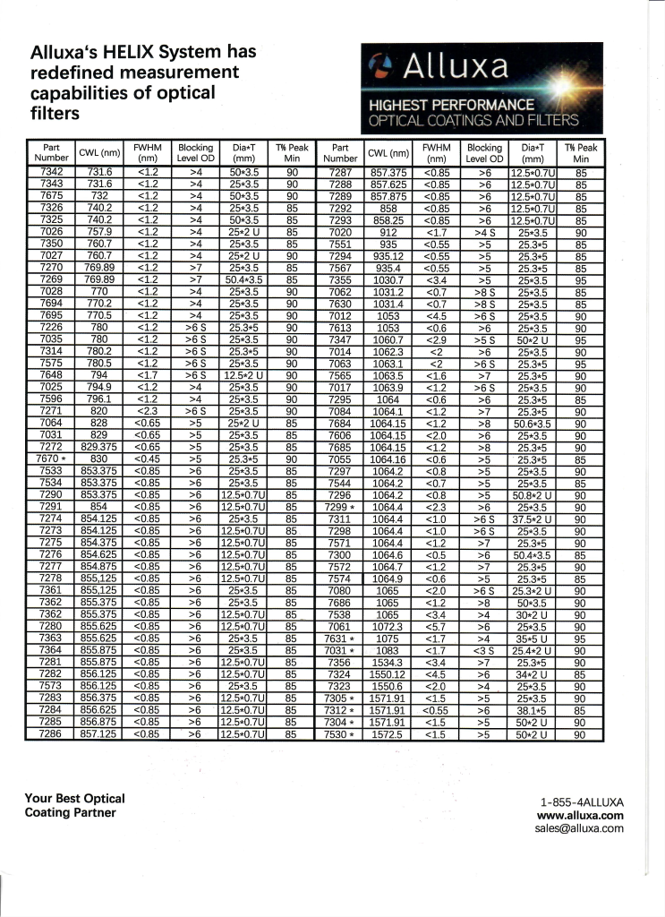 Products Alluxa Optical Filters and ThinFilm Coatings