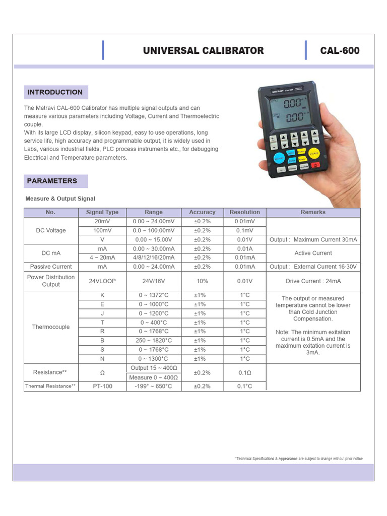 CAL 600 Universal Calibrator Catalogue May 2025 PDF Thermocouple