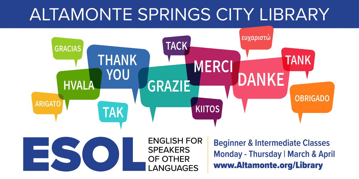 Beginner ESOL Classes, Altamonte Springs Library, 1 May to 13 December