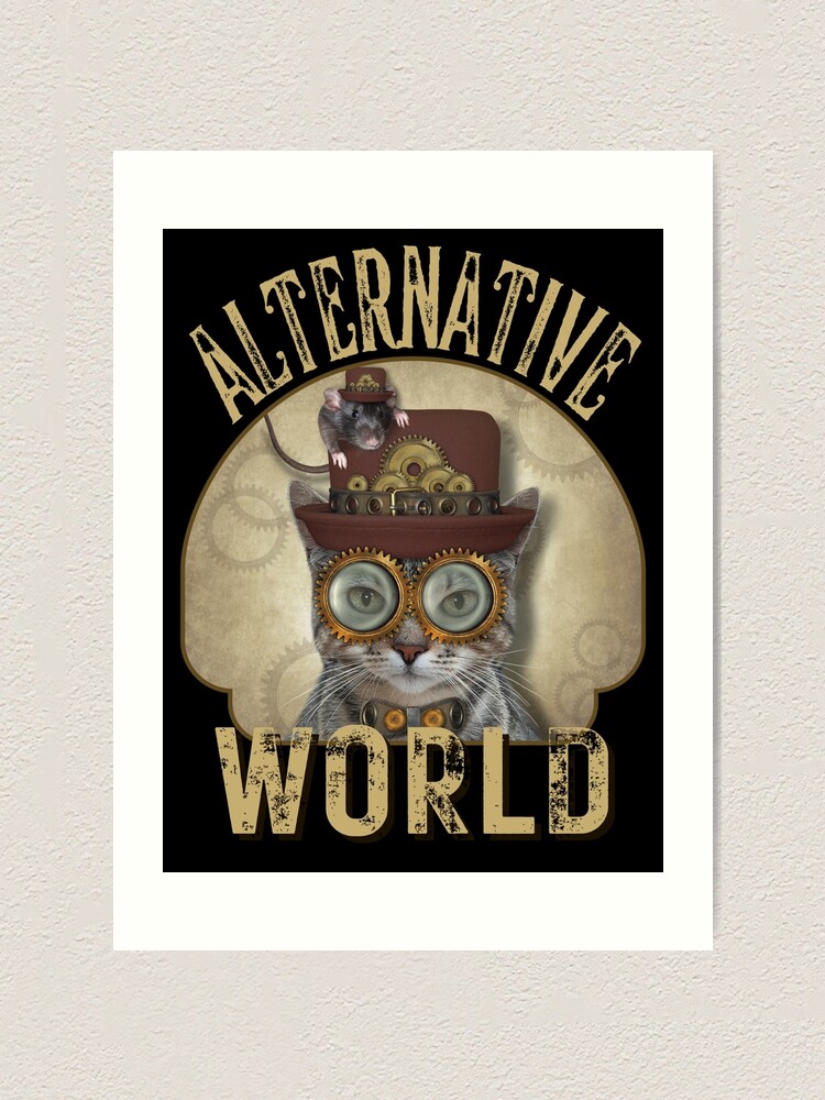 "Vintage steampunk alternative world with mouse and cat" Art Print for