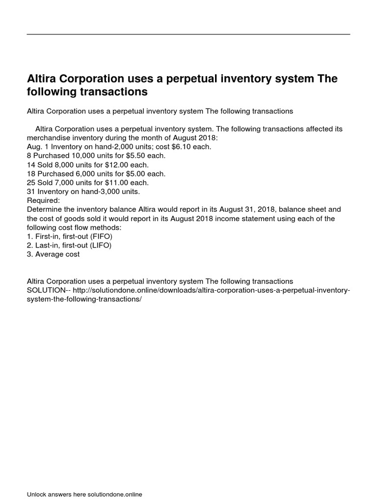 Altira Corporation Uses A Perpetual Inventory System The Following