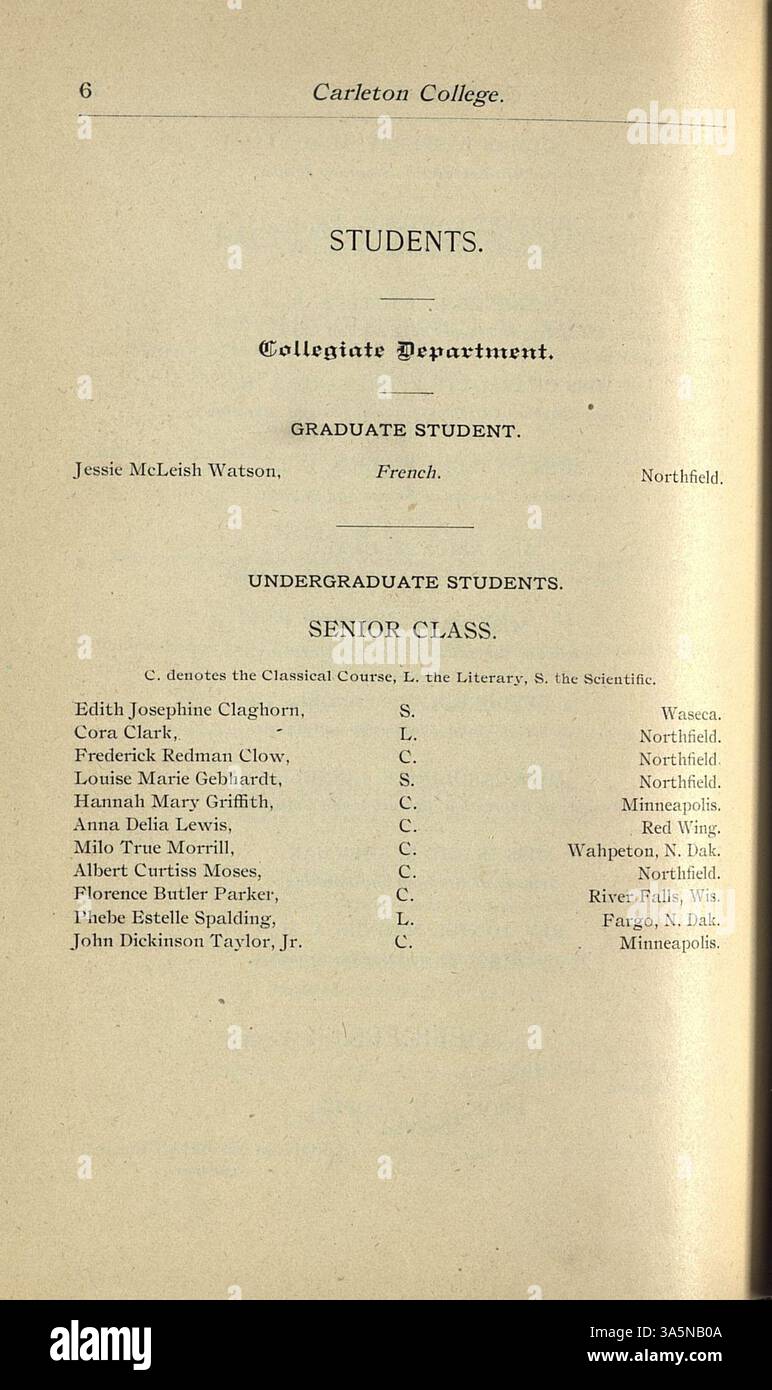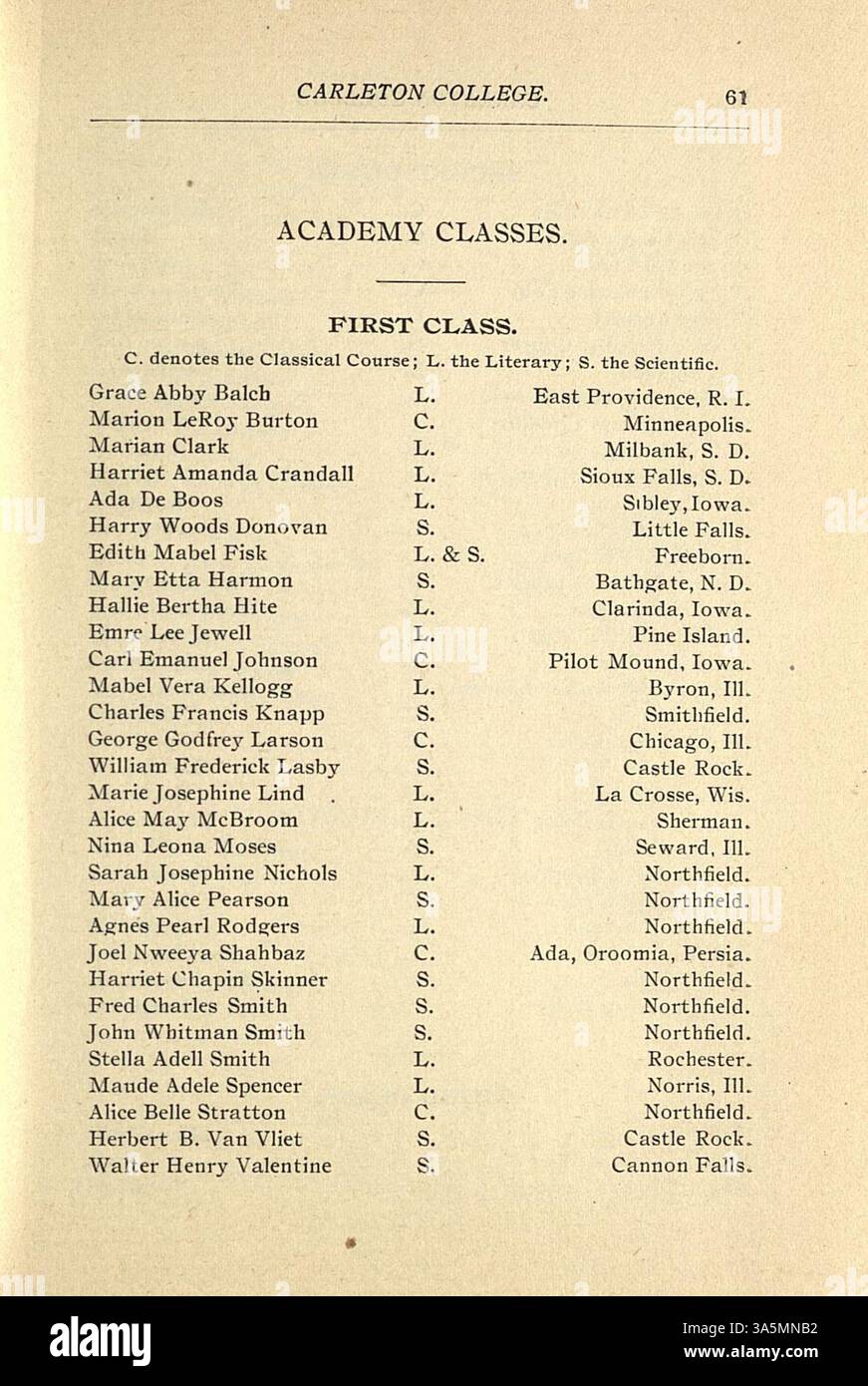 The carleton college 1900 1901 academic catalog provides a summa hires