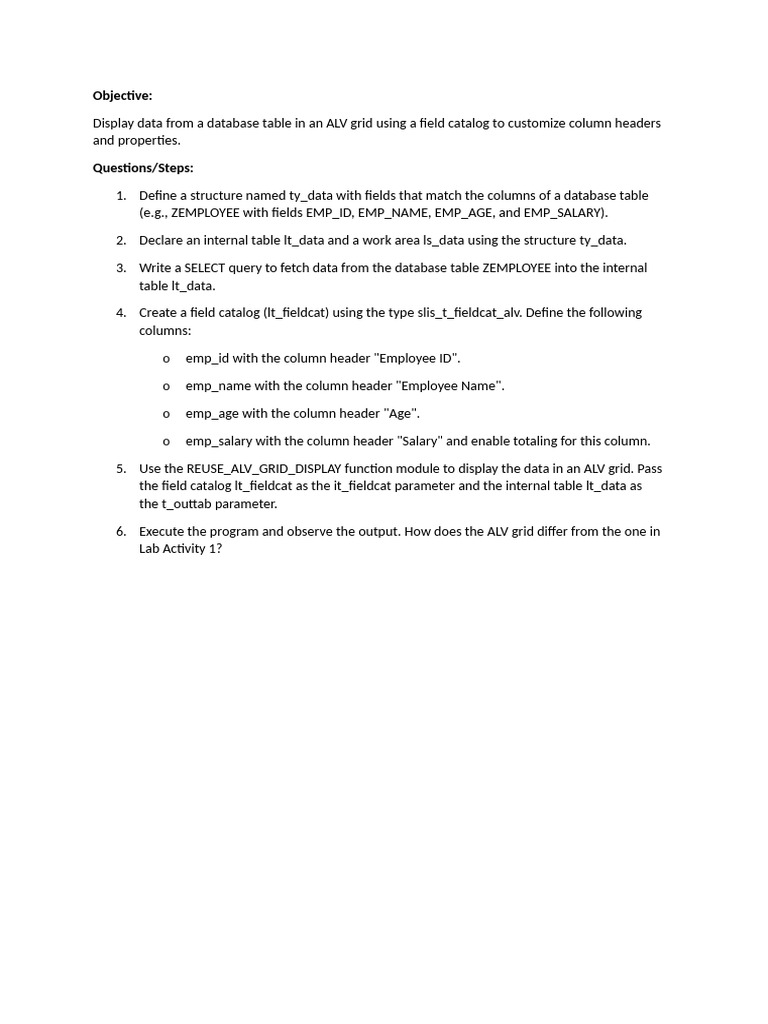 Lab Activity Classic Report With ALV Field Catalog PDF