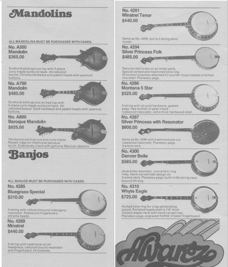 Banjos in August 1977 Alvarez Price List FiveStringPop's Photos