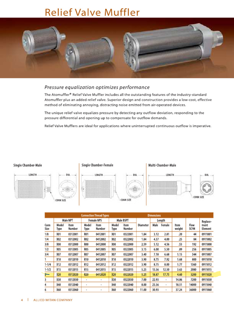 ALWITCO / ALLIED WITAN Air Exhaust ATOMuffler 3/4" NPT Male Muffler M0