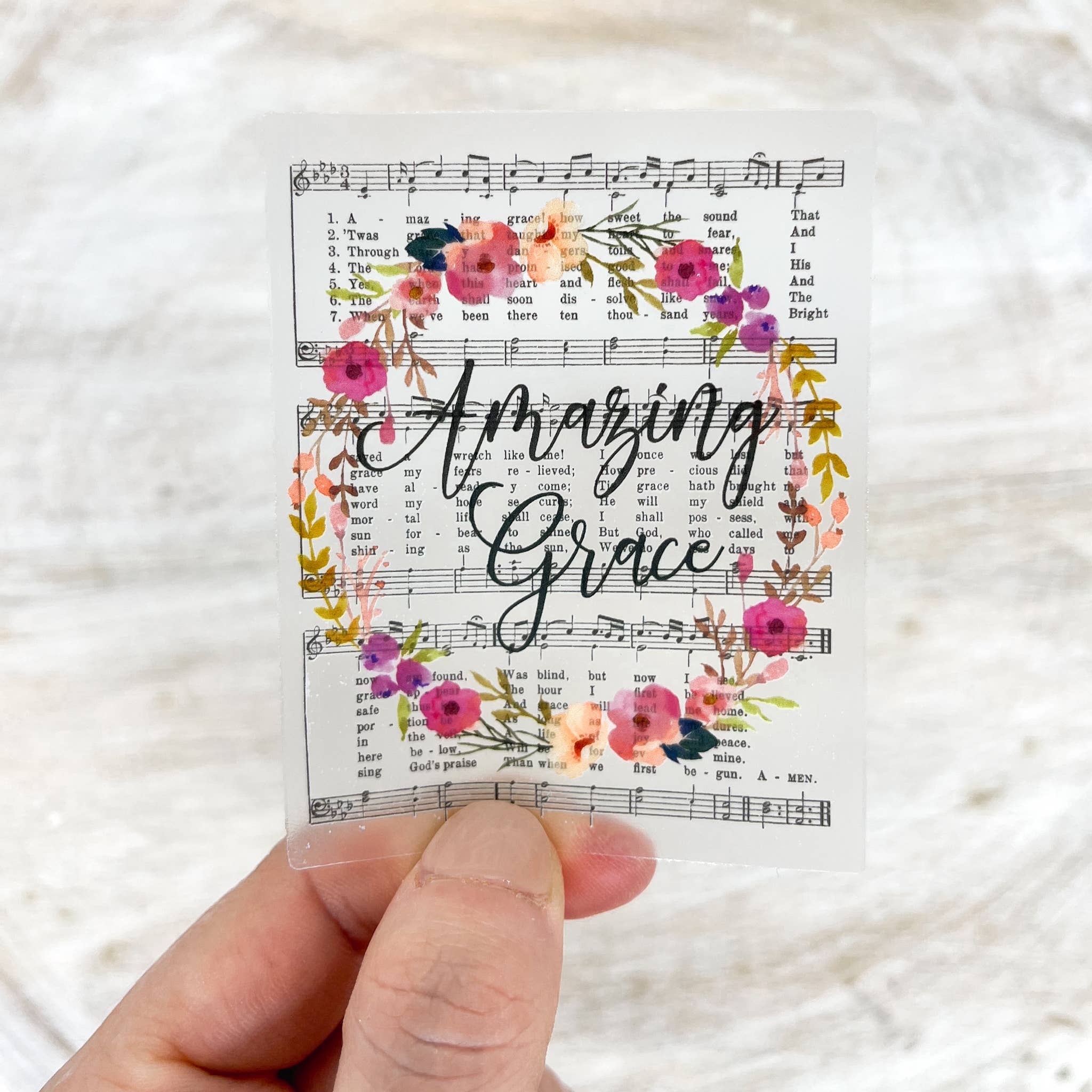 Wholesale Amazing Grace Hymn, Floral Christian Sticker, 3x3 inch for