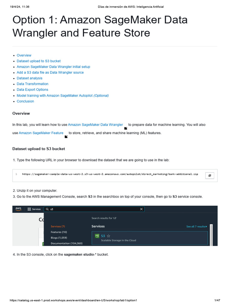 Lab101 Amazon Sagemaker Data Wrangling and Features Storel PDF