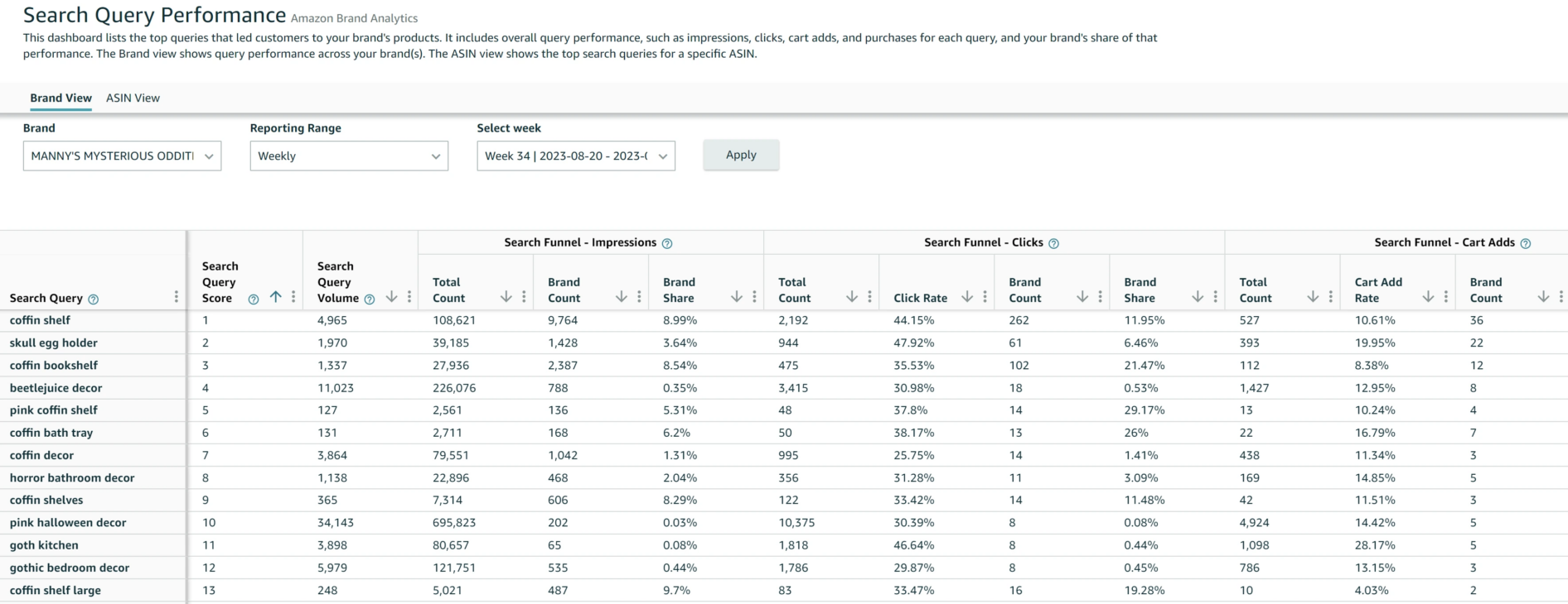 Amazon Search Analytics Search Query Performance Tool & Search Catalog