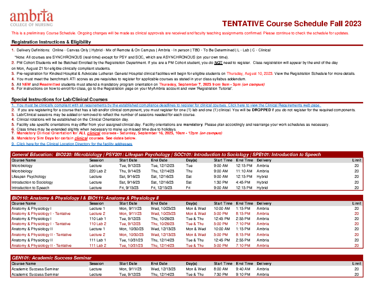 Tentative fall 2023 course schedule TENTATIVE Course Schedule Fall