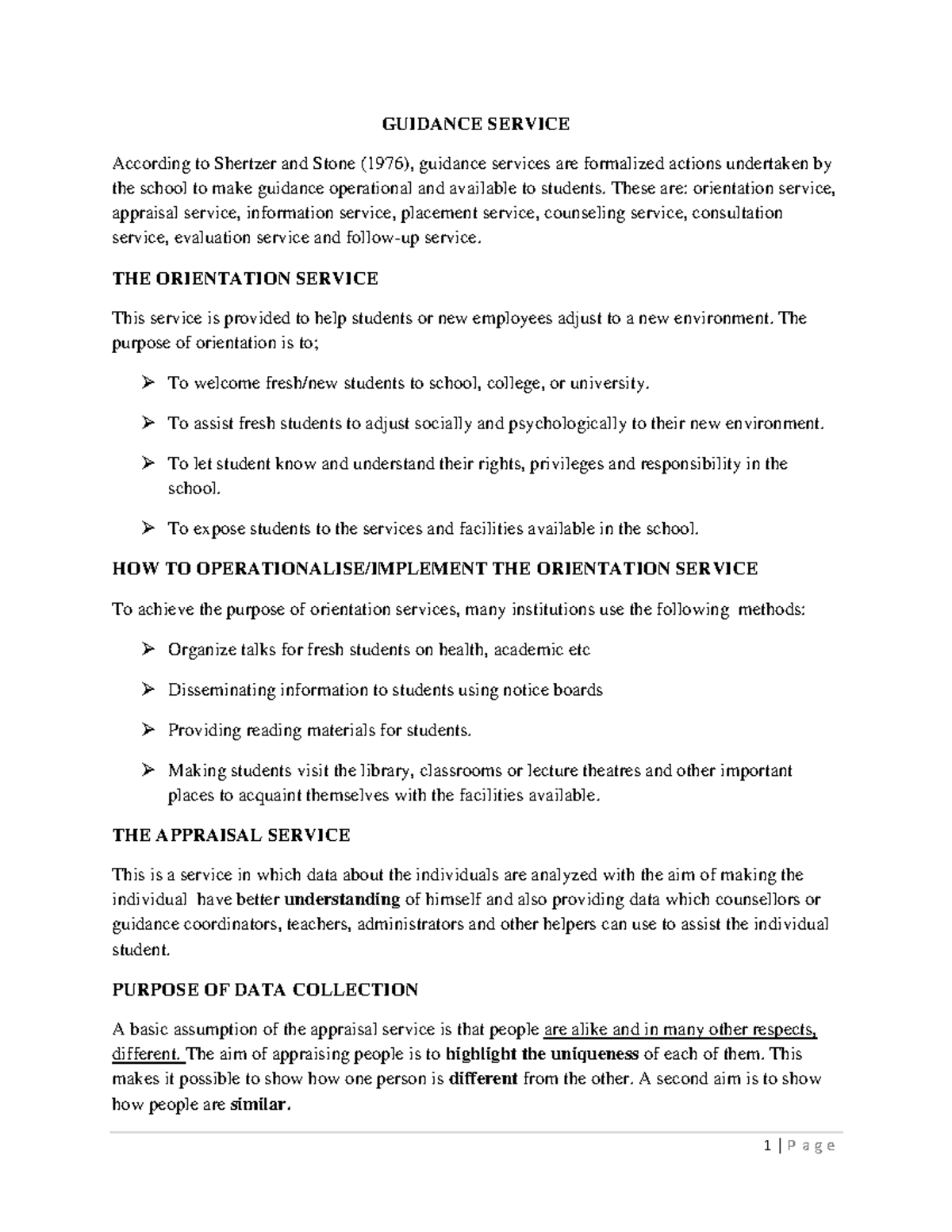 Guidance Service GUIDANCE SERVICE According to Shertzer and Stone