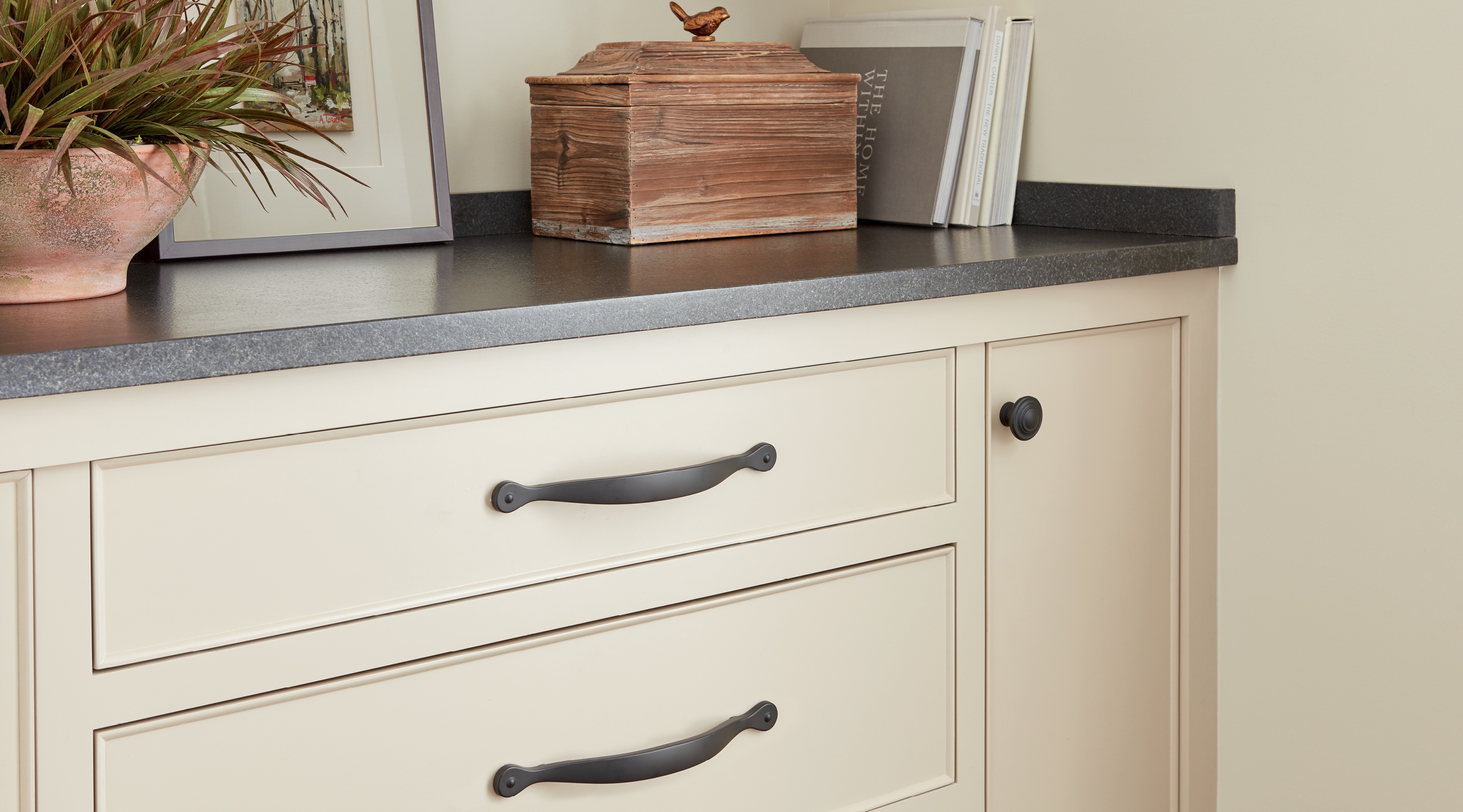 Dark, smoky finishes are the latest trend in kitchen design. Amerock