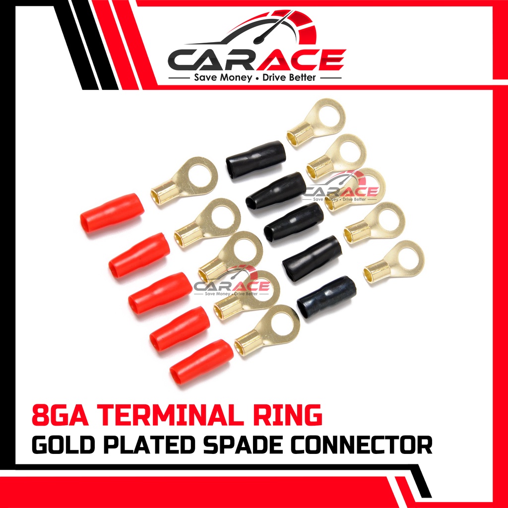 8GA Car Amplifier Gold Plated Ring Terminal Black & Red Power Amp Ring