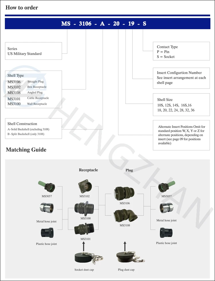 1 /2 /3 /4 Pin Ms 5015 Military Amphenol Connector Ms3106 Buy 1 /2 /3