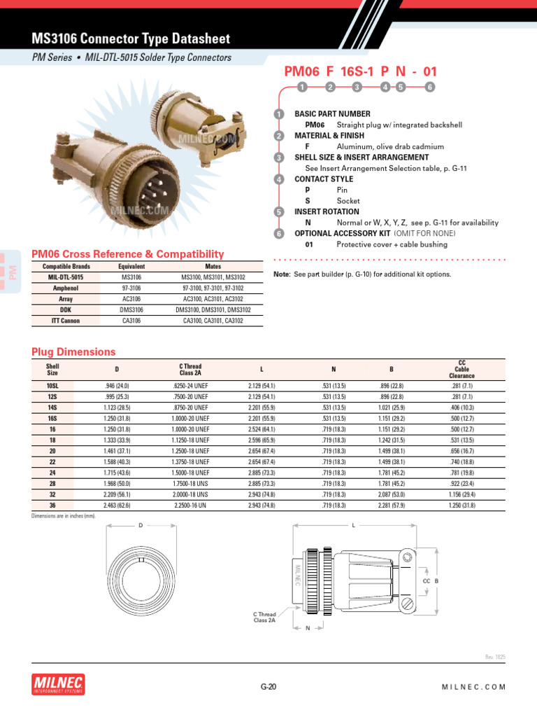 ms3106 Datasheet PDF Electrical Connector Electrical Engineering