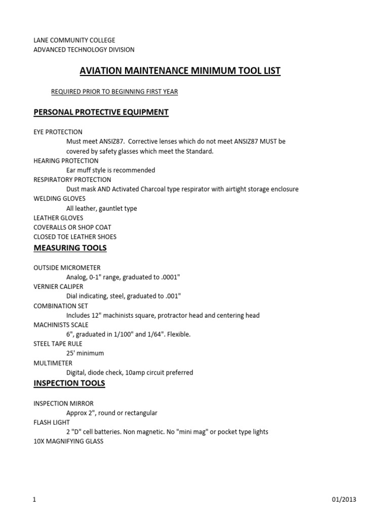 AMT Required Tool List PDF Tools Equipment
