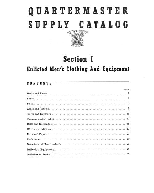 Catalogue d'époque, Quartermaster Supply Catalog, Section I, Enlisted
