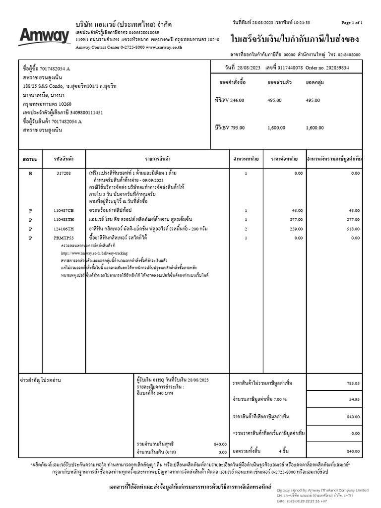 Digitally signed by Amway (Thailand) Company Limited DN cn=บริษัท แอม