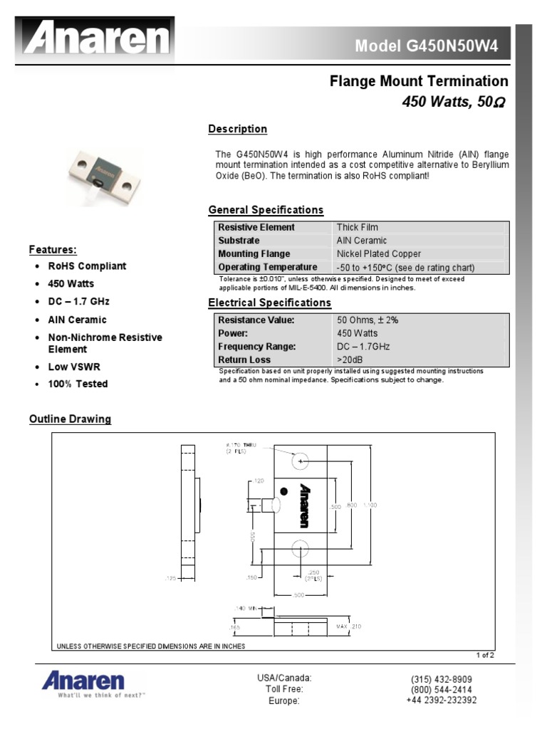 ANAREN 450W Dummy Load PDF Resistor Manufactured Goods