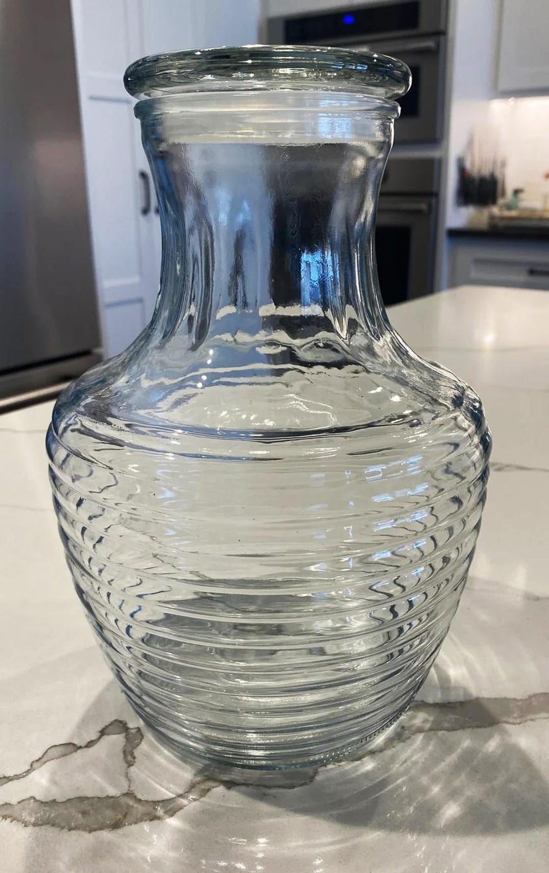 Anchor Hocking Clear Beehive 2.5 QT Carafe With Glass Lid Midcentury