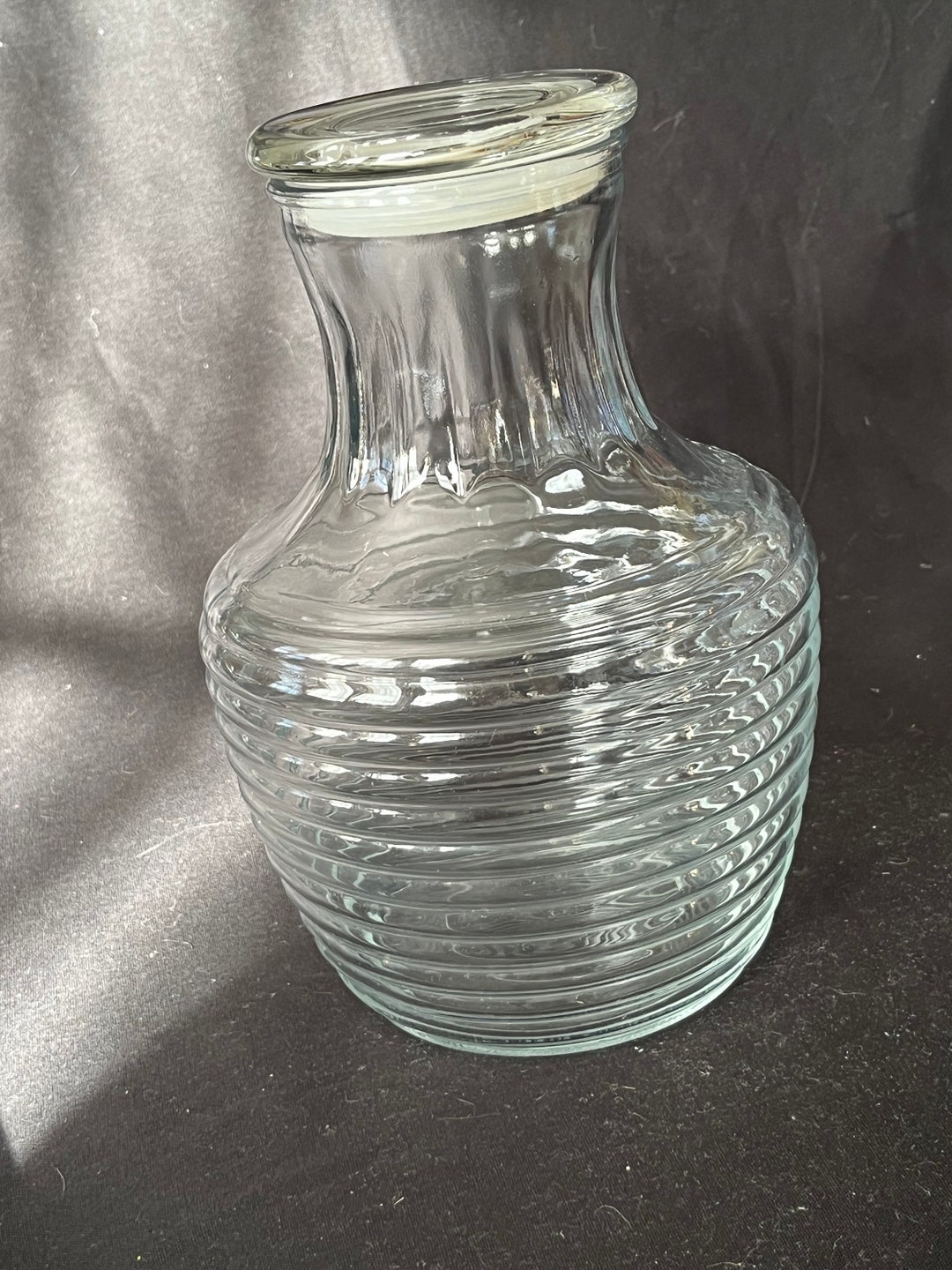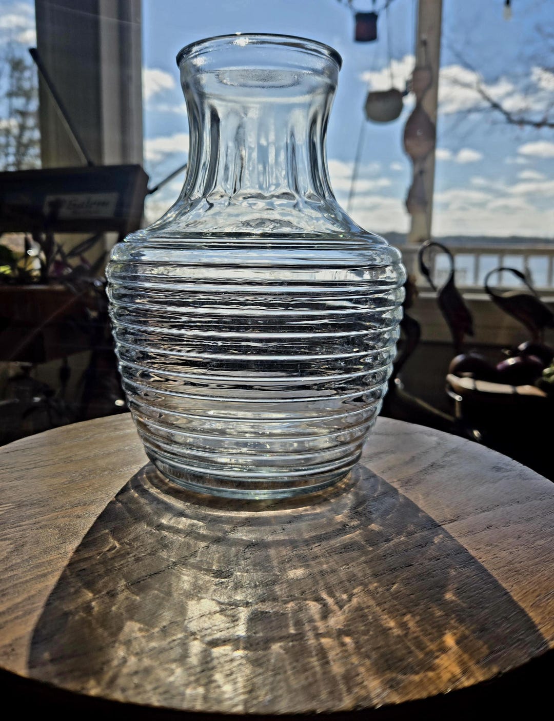 Vtg Anchor Hocking BEEHIVE PITCHER CARAFE Decanter, Ribbed Clear Glass