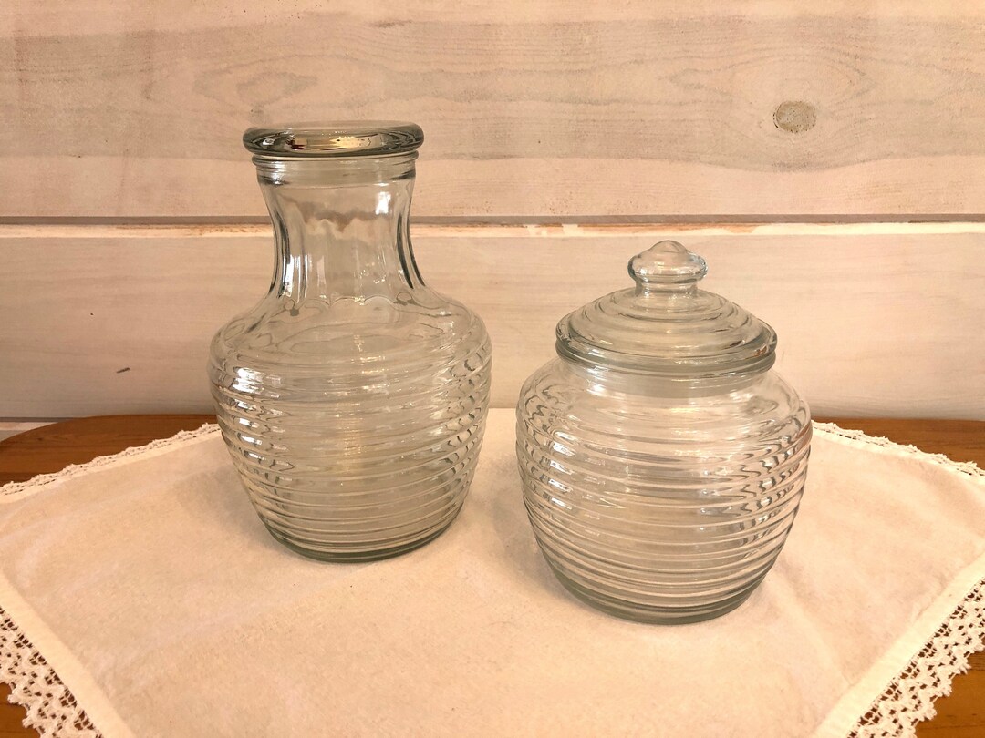 Vintage Set of 2 Anchor Hocking Clear Glass Ribbed Beehive Pattern a