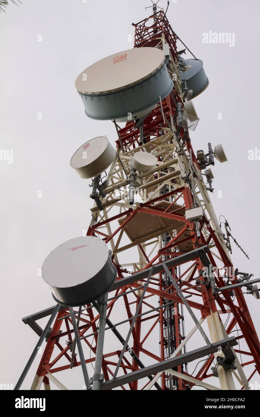 BARCELONA, SPAIN Jan 04, 2021 antenna with different mobile phone