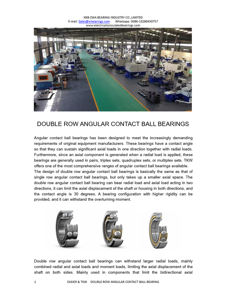 Double Row Angular Contact Ball Bearing Catalogue PDF Bearing
