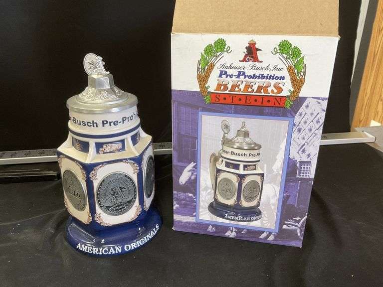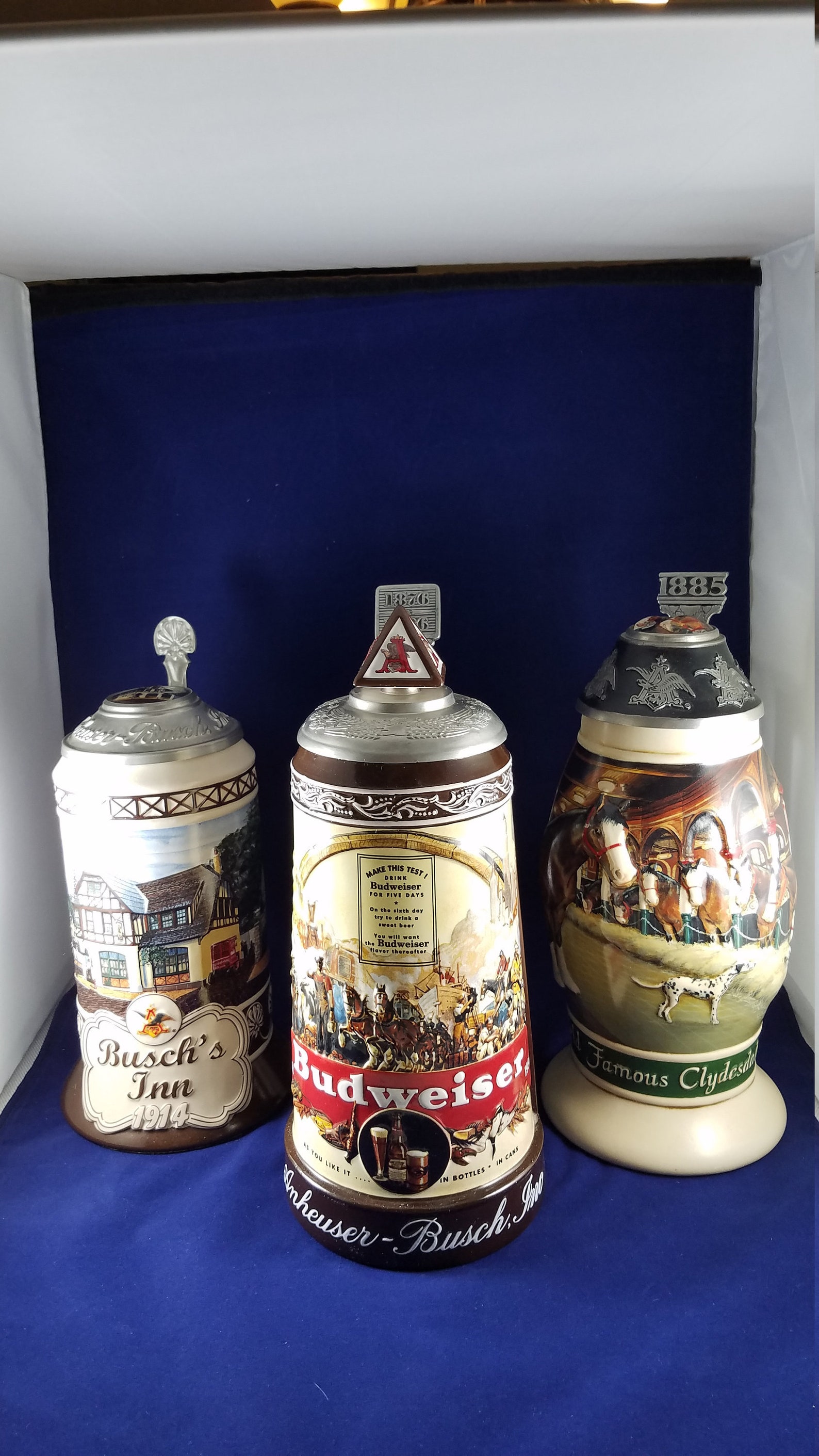 Four AnheuserBusch steins and a 1990 stein guidebook AAA Auction and