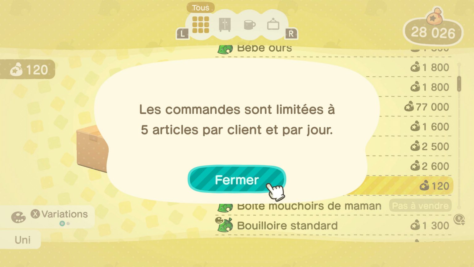 Articles temporaires du Nook Shopping Guide Animal Crossing New Horizons