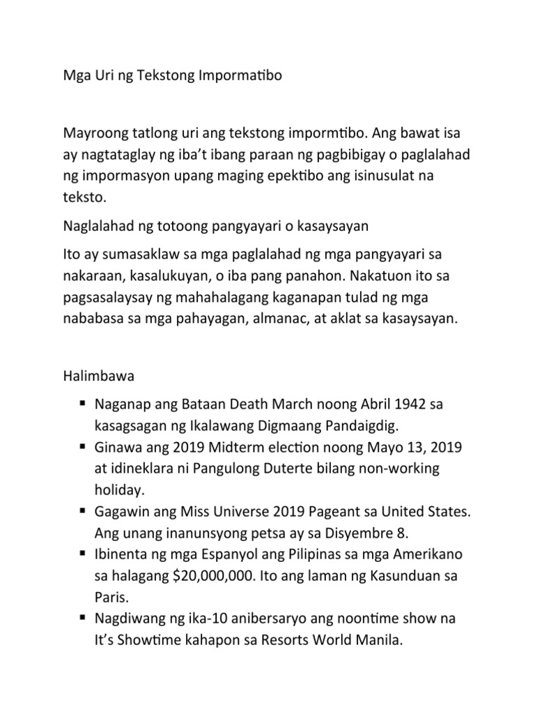 Mga Uri NG Tekstong Impormatibo PDF