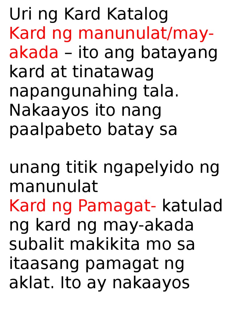 Mga Uri Ng Card Catalog Filipino