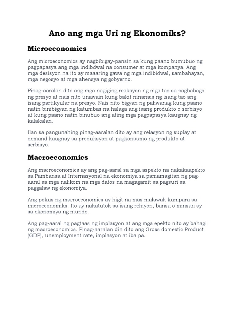Ano Ang Mga Uri NG Ekonomiks PDF