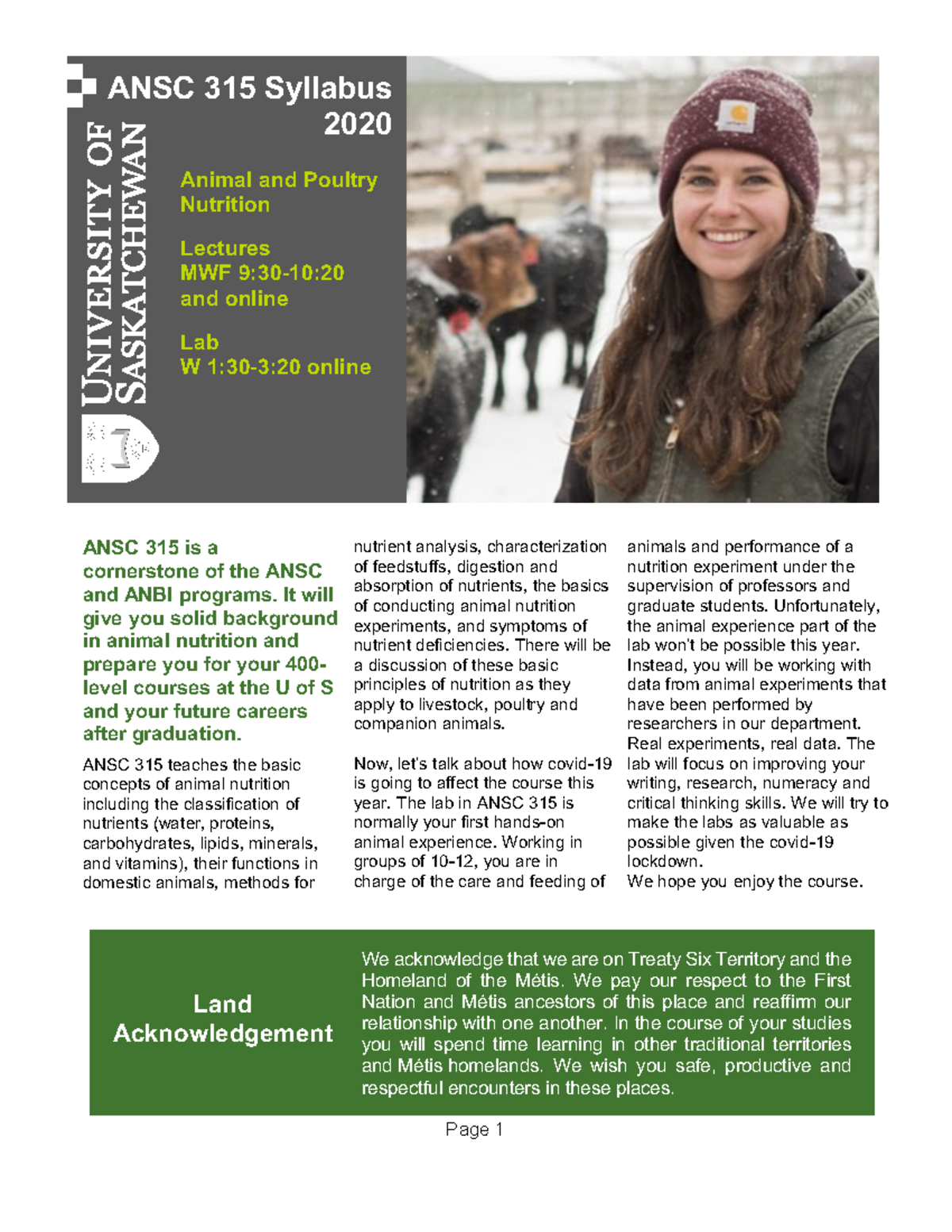 ANSC 315 Syllabus 2020 Fall ANSC 315 is a cornerstone of the ANSC and