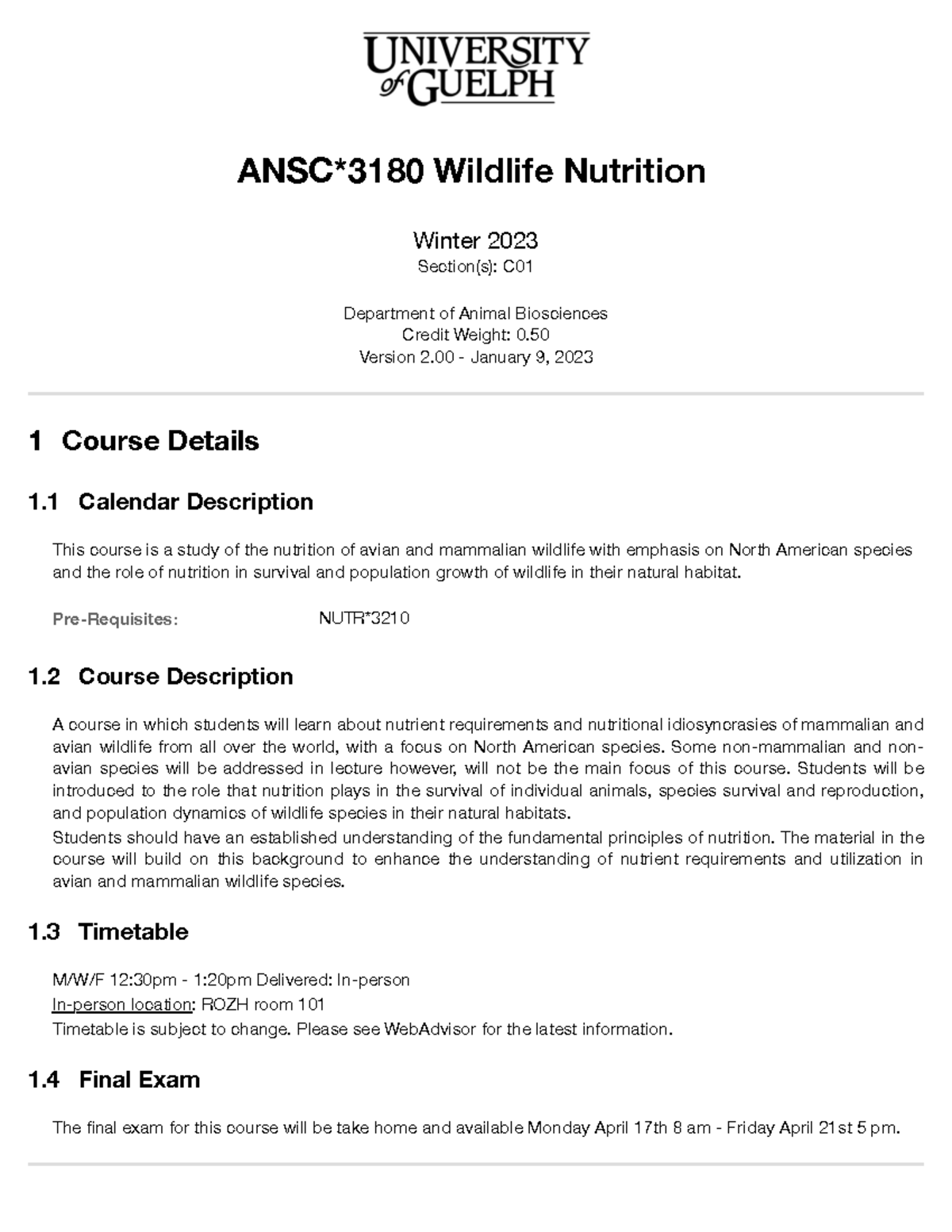 ANSC 3180 Course outline ANSC*3180 Wildlife Nutrition Winter 2023