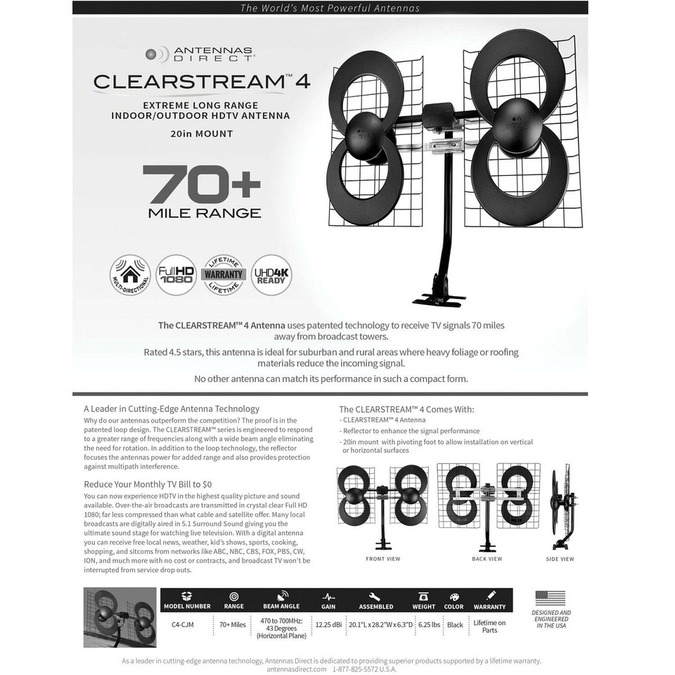 Antennas Direct ClearStream 4V Indoor Outdoor TV Antenna, Multi