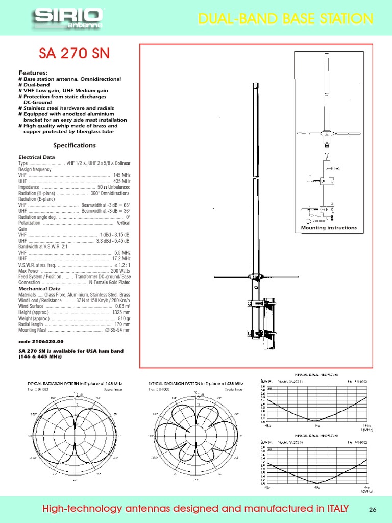 Sirio Dualband Ant Catalog PDF Very High Frequency Ultra High