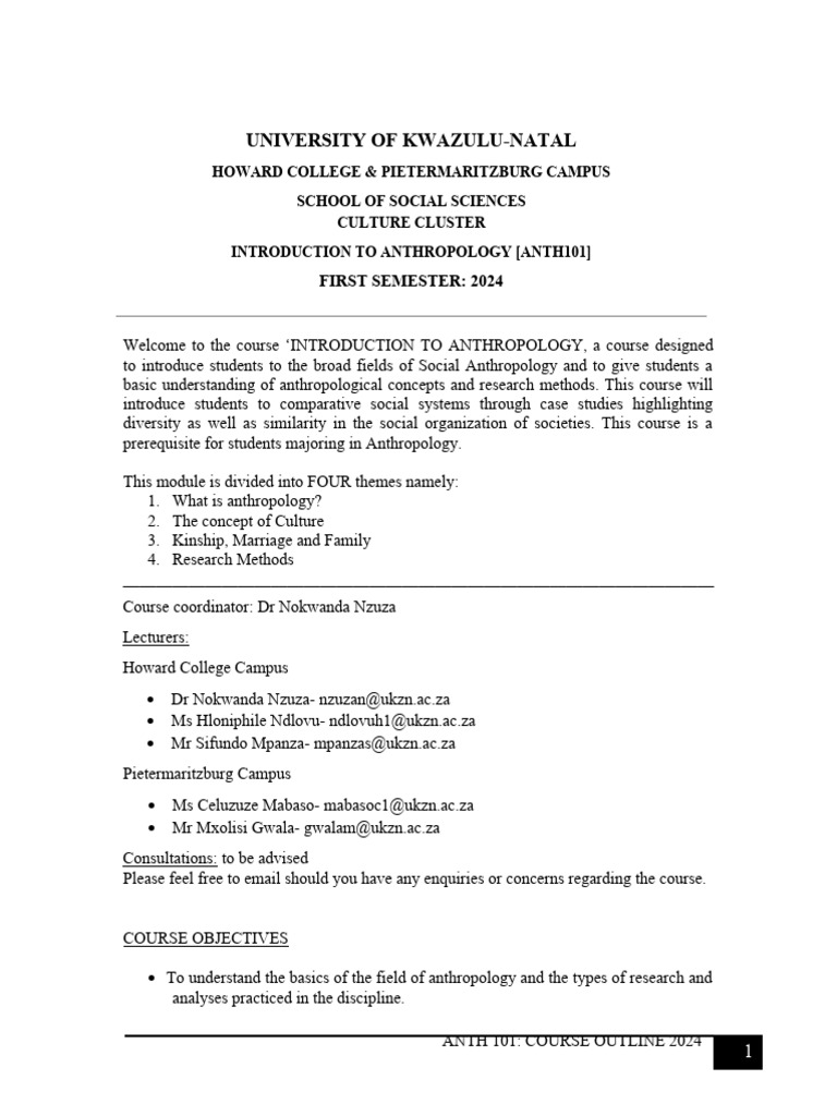 Anth 101 Course Outline PDF Anthropology Cultural Anthropology