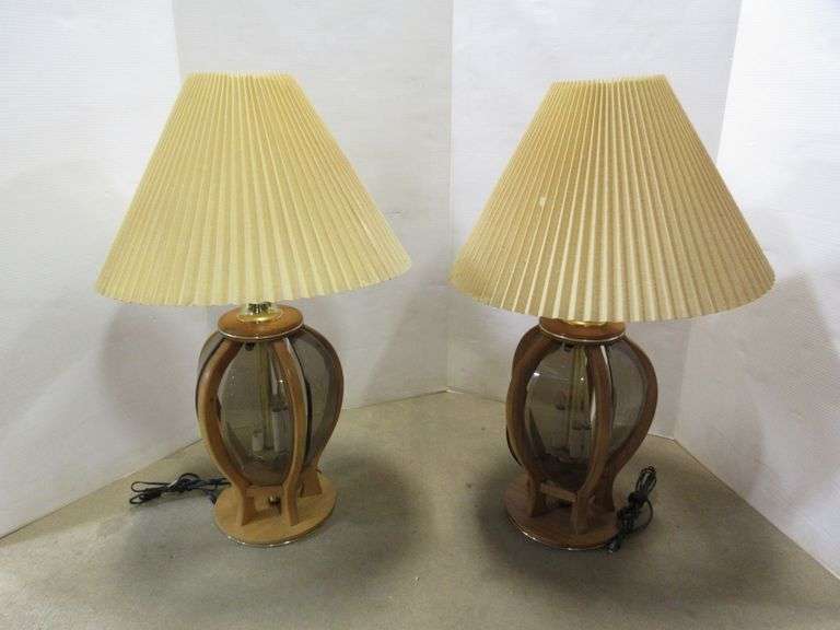 (2) Matching Anthony Table Lamps with Etched Leaf Design Albrecht