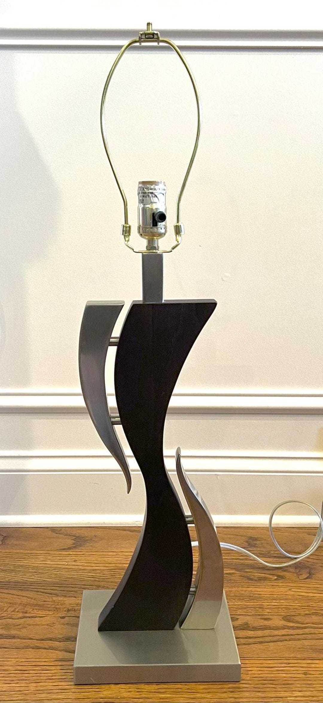 Anthony of California Table Lamp Dark Brown Wood and Brushed Metal