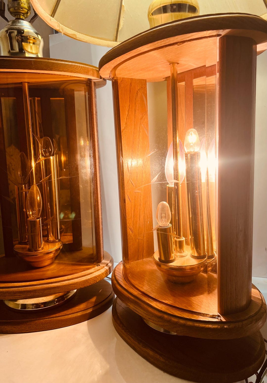Anthony California Inc Table Lamps With Etched Beveled Glass, Threeway