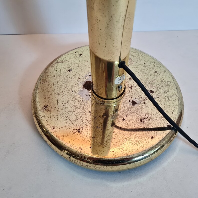Vintage Hollywood Regency Floor Etched Glass and Brass Floral Lamp